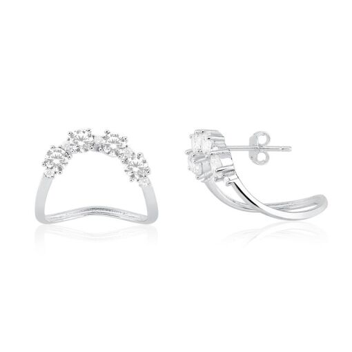 BRINCO PRATA 92,5 EAR CUFF CORRENTE, PEDRAS CARRÊS